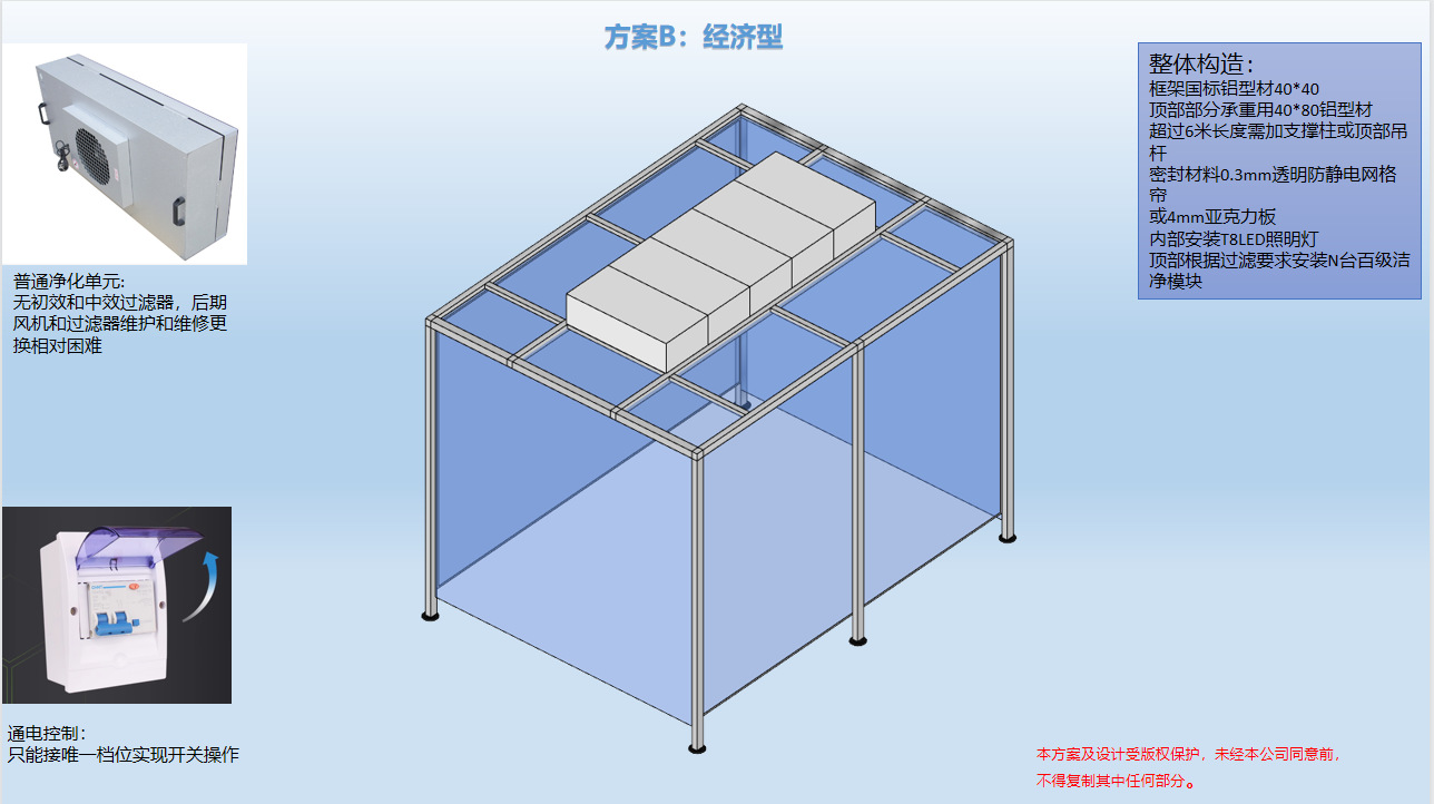 2.與土建式或裝配式百級潔凈室相 比,投資少,見效快,安裝簡便,運(yùn)行費(fèi)用低。
